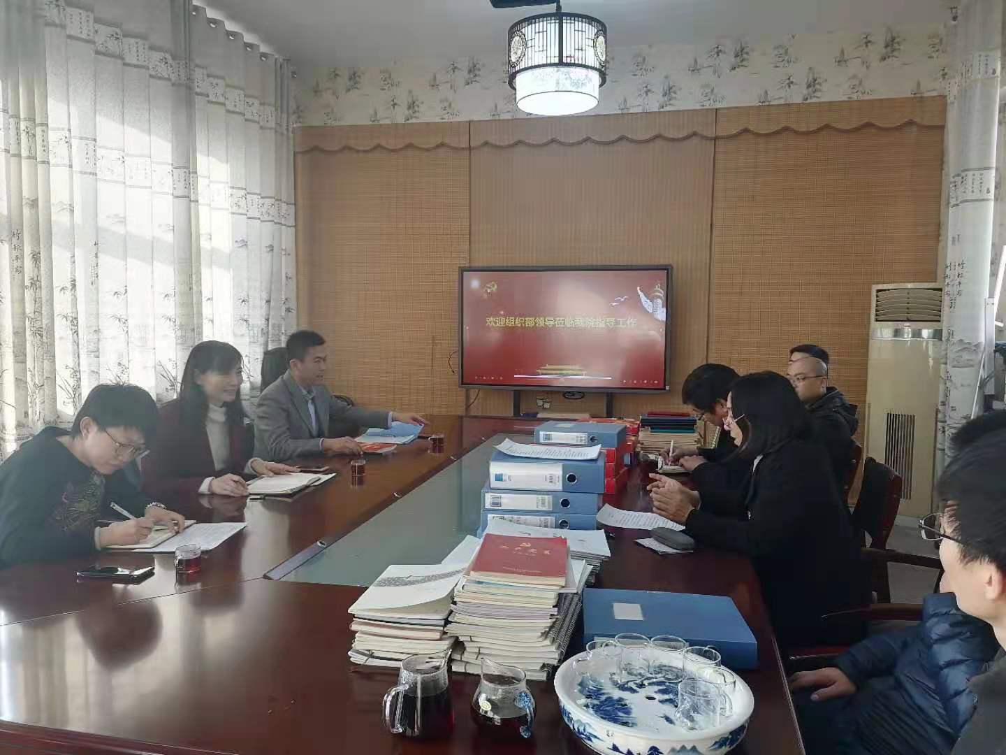 12月7日下午,组织部党委书记蔡建英、副部长冯天明和杨悦老师到Av线上看 指导检查工作,Av线上看 党委书记王春恋、主任曹南斌、党委副书记董昌州、各党支部书记和教研室主任参加了本次检查指导工作。