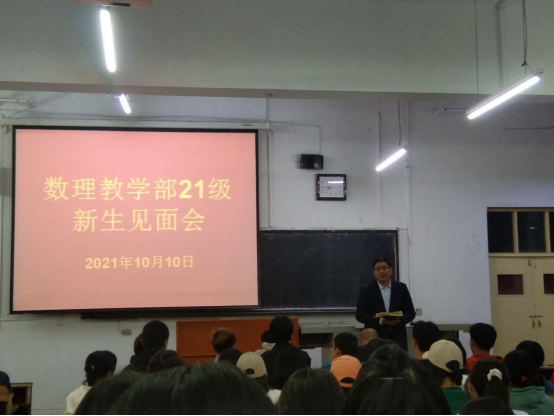 表示了衷心的祝贺与欢迎。他希望2021级新生们都能拥有家国情怀,做到以德为先,真正践行“由数达理,厚德博学”的院训,希望大家能够在未来四年里以梦想和责任为基础树立新目标,同时在虚实互动的空间里做到自主学习,充分利用慕课,中国大学MOOC等在线资源进行学习,不断提升品德、思维、学术三个方面的能力,真正在大学里成就更好的自我。