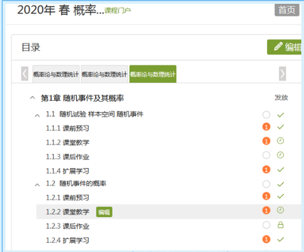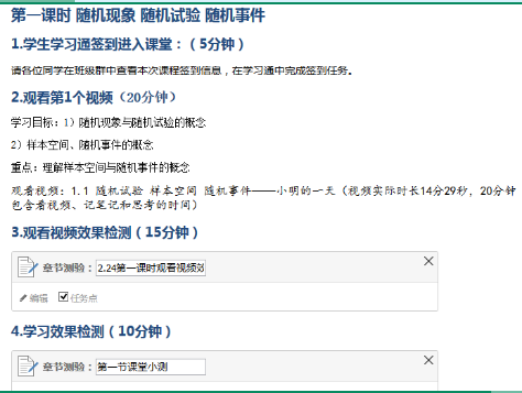 超星学习通是面向智能手机、平板电脑等移动终端的移动学习专业平台。教师们利用丰富的网上教学资源和多年的教学经验,高等数学课程组和概率论与数理统计课程组分配学习通建课任务,各位老师分工协作,开始建课、资料上传、题库建设、章节教学设计,并不断修改完善。在建课的过程中发现问题,课程组很多老师彻夜不休,讨论、尝试各种解决方案,对课程设计中包含的课前预习、课堂教学、课后作业、课外拓展等环节的制作精益求精,反复修改,最终制定出聚焦学生学习效果的课堂教学设计。