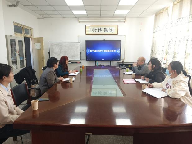 连续举办数学硕士培养方案调整论证及专业建设研讨会。河北师范大学苑立平教授、河北大学田大增教授、华北理工大学杨爱民教授作为特邀专家,与教学部主任董昌州、副主任史训立及硕士点学术骨干齐聚一堂,共同为数学硕士培养方案的优化与专业建设献计献策。