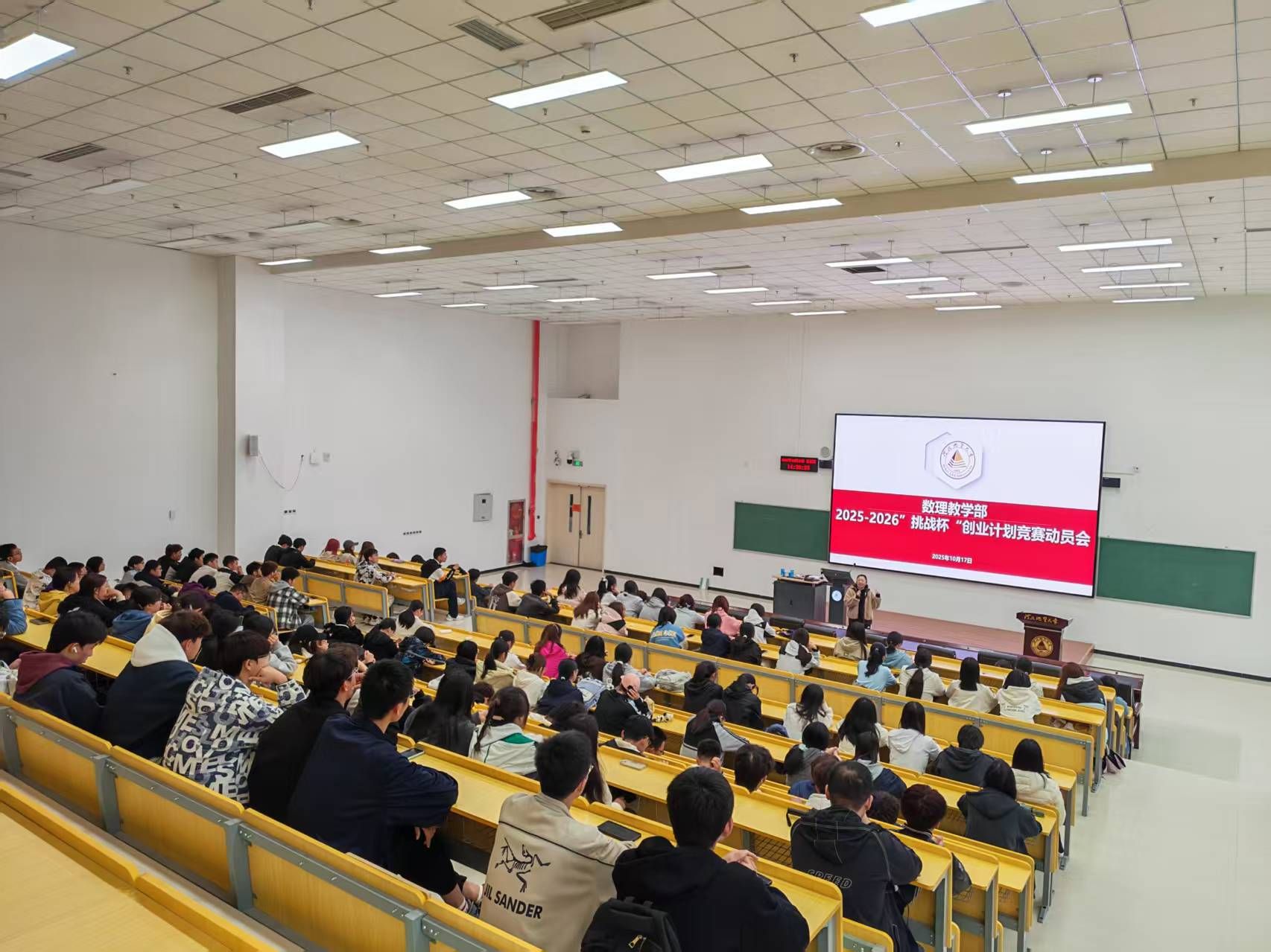 为积极响应学校关于开展2025-2026年“挑战杯”中国大学生创业计划竞赛动员会部署,激发数理学子创新创业热情,提升学生科技创新能力,10月17日,Av线上看 于教一109教室组织开展“挑战杯”中国大学生创业计划竞赛动员会,全体本科生、研究生积极参与。Av线上看 党委副书记张凝宁、信息与计算科学专业教研室副主任李亚宁、物理教研室教师张晗、高等数学教研室教师王永江及各年级辅导员出席活动。