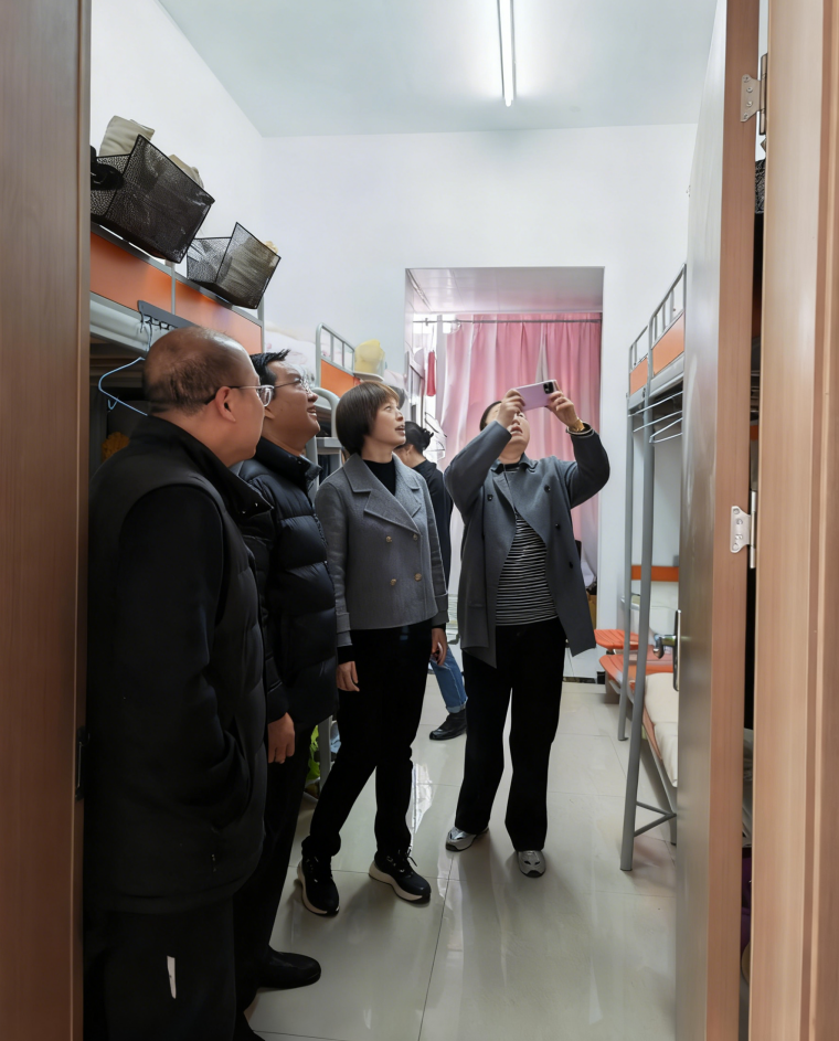 走访过程中,领导老师们与同学们进行了亲切交流,细致询问了大家的学习进展与生活状况,认真听取意见和建议,并鼓励同学们勤奋学习、互帮互助。检查重点针对宿舍内插排插座安全、人走未断电、房间内及走廊堆放杂物可燃物等情况,叮嘱同学们要注意消防安全,杜绝侥幸心理,严格遵守宿舍管理规定,共同维护整洁、安全的居住环境。检查过程中,也发现有部分学生宿舍整洁干净、衣物收纳整齐、学生消防安全意识较高的现象。